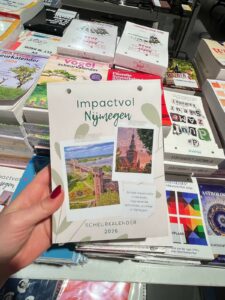 Voorlopig richt ze zich op Nijmegen, maar ze kijkt voorzichtig of de kalender ook in andere steden een plek kan krijgen. Niet als concrete ambitie, maar als mogelijkheid. Want wat in Nijmegen werkt, kan misschien ook elders werken. Blad voor blad, stad voor stad.